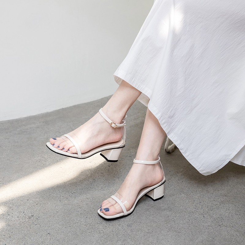 涼鞋女2019夏新款粗跟高跟鞋百搭網紅仙女風一字帶透明膠片女鞋子